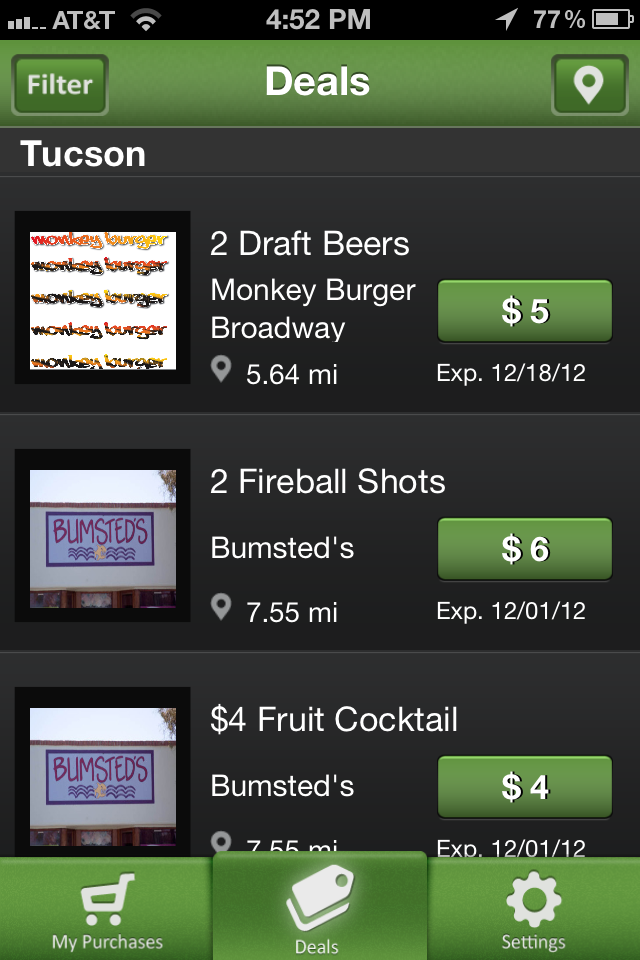 We had a chance to look at the app first hand in Tucson. With deals from Gentle Ben’s, Monkey Burger, Bumsted’s, Playground Bar, Sky Bar, Pancho Villas, and other merchants the application definitely has a wide selection of locations to choose from. As a matter of fact there are 21 different bars and clubs all publishing different deals and offers as of right now. With over 50 offers from those participating merchants it is likely you will be able to utilize this app to save some $$$. Please let us know if you have utilized this application and tell us what you think in the comments section below.